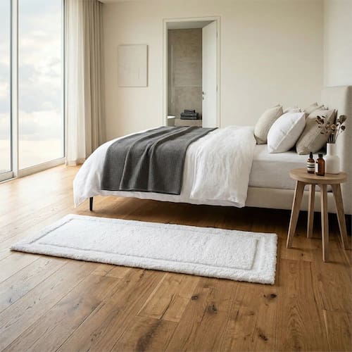 O design clean, aliado às bordas em relevo duplo, valoriza a peça com um acabamento elegante que se adapta facilmente a diferentes estilos de decoração. Versátil, é perfeito para quartos, banheiro, corredor ou espaços de relaxamento, trazendo praticidade e beleza para o dia a dia.