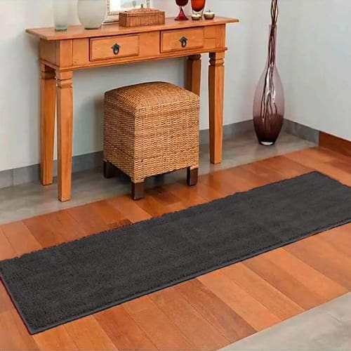 Além de preencher os espaços onde não tem metragem o suficiente para colocar um outro tapete, a passadeira ajuda a alongar o espaço visualmente e dá a sensação que o ambiente é mais amplo.