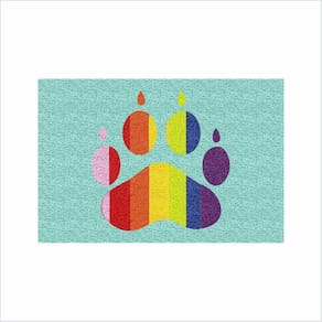 Tapete tipo Capacho Vinil com fibras entrelaçadas e costado emborrachado com arte pinta em tinta vinílica especial.