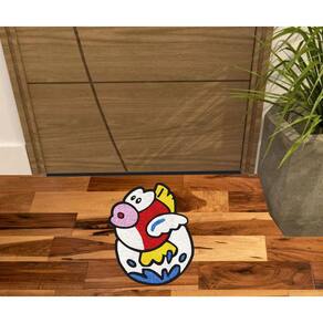 Capacho Vinil com fibras entrelaçadas e costado emborrachado com arte pinta em tinta vinílica especial.