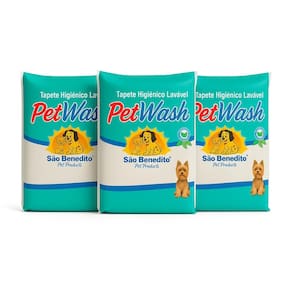 Tapete PetWash Lavável Tamanho Pequeno Kit com 3 Unid Tapete Higiênico Lavável PetWash - Kit com 3 Unidades 60x50cm durável Reutilizável Econômico Sustentável Mantenha seu lar sempre limpo, cheiroso e com seu pet confortável com o Tapete Higiênico Lavável PetWash, desenvolvido especialmente para oferecer praticidade, economia e bem-estar tanto para você quanto para seu melhor amigo de quatro patas por que escolher o Tapete PetWash lavável e Reutilizável: Diferente dos tapetes descartáveis, o PetWash pode ser lavado à mão ou na máquina, garantindo uso contínuo por até 3 meses com os devidos cuidados. alta Absorção: Com camadas tecnológicas, o tapete absorve a urina rapidamente, mantendo a superfície seca e confortável para o pet, evitando odores indesejáveis no ambiente. tamanho Ideal - 60x50cm: Perfeito para cães de pequeno porte e gatos. Compacto e eficiente, cabe em banheiros, lavanderias, sacadas ou onde você preferir. base Impermeável: Impede o vazamento de líquidos para o piso, protegendo seu chão de manchas e danos. ecologicamente Correto: Ajude o planeta reduzindo o descarte de tapetes descartáveis. O PetWash é uma escolha sustentável que gera menos lixo e mais economia versátil e Discreto: Pode ser em casas, apartamentos, viagens, hotéis pet friendly, caixas de transporte e até mesmo em banheiras de filhotes ou pós-cirurgias. O que você está comprando 3 Tapetes Higiênicos Laváveis PetWash Tamanho: 60x50cm cada Cor: Conforme imagem ilustrativa Marca: São Benedito Pet Products Duração: até 3 meses por unidade Marca: Não Informado Ean: 7890878990557