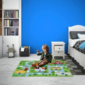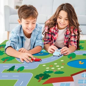 O Tapete de Pista de Carrinhos em Lona possui cores vivas e desenhos diidos, que estimulam a criatividade e é perfeito para deixar a brincadeira das crianças e da família inteira mais alegre e dinâmica.
