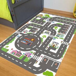 Importante: - não é um tapete peluciado e nem emborrachado - nossas pistas não são da marca 'hot wheels',apenas são aptas para brincar usando os carrinhos - as pistas não acompanham carrinhos - pode sofrer pequenas alterações de cores em relação a tela, tanto quanto pequena variação nas medidas. Medida total: 140x100cm