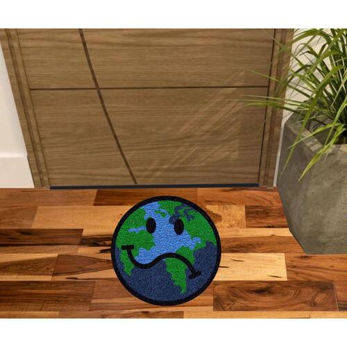 Tapete tipo Capacho Vinil com fibras entrelaçadas e costado emborrachado com arte pinta em tinta vinílica especial.
