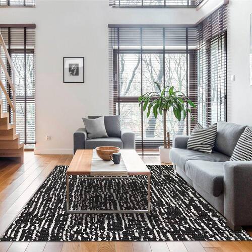 Tapete Poliéster Antiderrapante 200x250cm para Sala Preto Mesclado Jacquard Branyl.