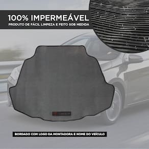 CARACTERÍSTICAS: - Confeccionado em borracha PVC - Base pinada antiderrapante - Tapete de porta malas maleável - Acabamento lateral em viés - Bordado em carpete com o nome do veículo - Acomodação sob medida no porta malas do veículo