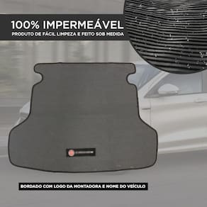 CARACTERÍSTICAS: - Confeccionado em borracha PVC - Base pinada antiderrapante - Tapete de porta malas maleável - Acabamento lateral em viés - Bordado em carpete com o nome do veículo - Acomodação sob medida no porta malas do veículo