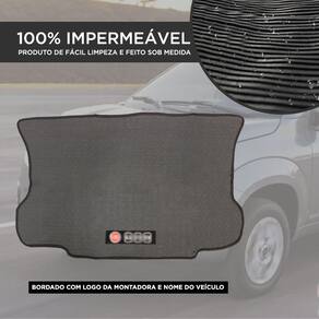 CARACTERÍSTICAS: - Confeccionado em borracha PVC - Base pinada antiderrapante - Tapete de porta malas maleável - Acabamento lateral em viés - Bordado em carpete com o nome do veículo - Acomodação sob medida no porta malas do veículo