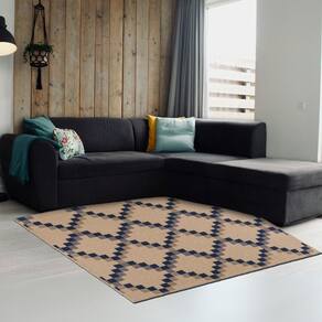 O Tapete Tribale I combina a suavidade do bege com a intensidade do azul em um desenho geométrico de inspiração étnica. O contraste entre as cores cria uma composição sofisticada e versátil, que se adapta tanto a ambientes modernos quanto clássicos.