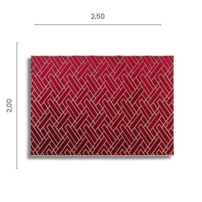 É perfeito para salas de estar, quartos, escritórios ou varandas cobertas — trazendo aconchego, ousadia e aquele ar de exclusividade que transforma qualquer espaço em um palco de grandes emoções. Altura do Pêlo: Pelo Baixo (menor que 1 cm) Ambiente Principal: Sala de Estar Antiácaro: Não Antiderrapante: Sim Composição: 100% Poliéster Comprimento: 250 cm Cor: Vermelho Cor do Produto: Vermelho Estilo: Clássico Informações Complementares: Base Antiderrapante em E.V.A. . Itens Inclusos: 1 Tapete Largura: 200 cm Lavável: Sim Linha ou Coleção: Frisson Plus Marca: São João Material da Base: Base Primária 100% Poliéster Material Principal: Chenille Origem do Produto: Nacional País de Origem: Brasil Peso: 5,35 kg Recomendações de Uso, Manutenção e Limpeza: Usar rotineiramente vassoura de pelos macios, aspirador ou pano úmido. Não alvejar, evitar fricção e não secar ao sol. Tema da Estampa: Geométrica Tipo de Tapete: Tapete