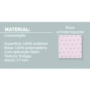 - tamanho do tapete: 1,00 largura x 1,00 comprimento - peso aproximado: 0,720 gramas - composição do tapete: superfície: 100% poliéster / base: 100% polipropileno - base inferior: 100% antiderrapante