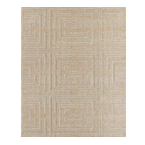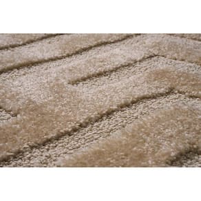 O tapete é feito de 100% polipropileno, um material durável e resistente, que permite uma fácil manutenção e limpeza. A altura do pelo é de 12mm, o que proporciona uma sensação agradável de maciez ao toque. Além disso, ele conta com detalhes de baixo relevo em 6mm, que dão textura e profundidade ao design abstrato.