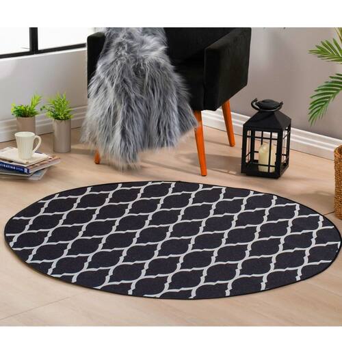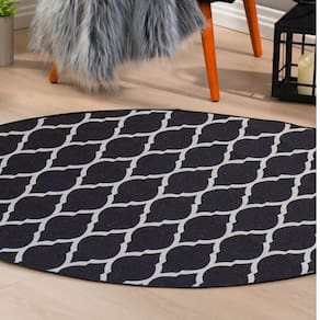 Tapete Redondo 1,40x1,40 Cami Casa Jacquard Antiderrapante - Cor: Imperio Preto