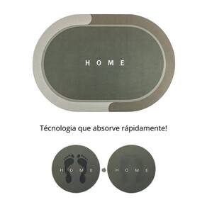 A cor verde, de tom médio a escuro, lembrando um verde musgo, confere uma sensação de tranquilidade e conexão com a natureza, esse tom de verde é ao mesmo tempo neutro e sofisticado, combinando com decorações rústicas, contemporâneas ou minimalistas. A escrita em uma tipografia clara e elegante, com um tom claro, entrega leveza e elegância ao ambiente. A base é confeccionada em borracha antiderrapante, oferecendo aderência eficiente a pisos lisos, como cerâmica ou porcelanato. Esse recurso garante segurança, evitando deslizamentos e proporcionando estabilidade, além disso, a superfície do tapete é densa, macia e aconchegante ao toque. Feito com fibras grossas, ele possui uma textura espessa que é fofa e confortável para pisar, perfeita para quem gosta de andar descalço, possuindo uma tecnologia que absorve os pés e sapatos molhados em minutos, sem deixar marcas