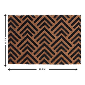 "Este tapete retangular de 40x60 cm e a solucao perfeita para manter a sujeira fora de casa. Com uma tonalidade elegante de preto e marrom, ele e feito de fibra natural com uma superficie 100% coco e uma base de latex, garantindo durabilidade e resistencia. A espessura de 15mm proporciona um toque macio e confortavel a cada passo, enquanto seu formato retangular se encaixa perfeitamente em qualquer entrada.