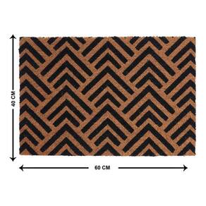 Este tapete retangular de 40x60 cm e a solucao perfeita para manter a sujeira fora de casa. Com uma tonalidade elegante de preto e marrom, ele e feito de fibra natural com uma superficie 100% coco e uma base de latex, garantindo durabilidade e resistencia. A espessura de 15mm proporciona um toque macio e confortavel a cada passo, enquanto seu formato retangular se encaixa perfeitamente em qualquer entrada.