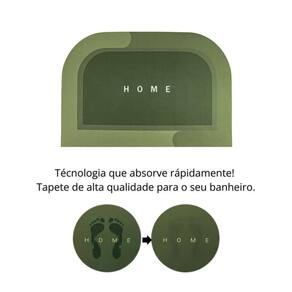 A cor verde, de tom médio a escuro, confere uma sensação vida, limpeza e aconchego. A escrita em uma tipografia clara e elegante, com um tom claro, entrega leveza e elegância ao ambiente. A base é confeccionada em borracha antiderrapante, oferecendo aderência eficiente a pisos lisos, como cerâmica ou porcelanato. Esse recurso garante segurança, evitando deslizamentos e proporcionando estabilidade, além disso, a superfície do tapete é densa, macia e aconchegante ao toque. Feito com fibras grossas, ele possui uma textura espessa que é fofa e confortável para pisar, perfeita para quem gosta de andar descalço, possuindo uma tecnologia que absorve os pés e sapatos molhados em minutos, sem deixar marcas