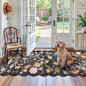 Tapete de corredor lavável de 10 x 25 cm para corredor: tapetes de cozinha florais largos recortados antiderrapantes para banheiro | sala de estar | tapete boho para entrada | sala de jantar (preto, 10 x 25)