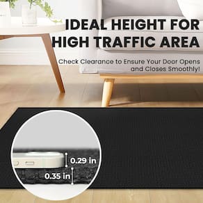 - Atributo chave: Espessura: Tapete: 0,2 pol. Borda: 0,38 polegadas | Cor: preto. Notas: As cores podem variar sob diferentes tipos de iluminação. As bordas reforçadas (0,38 pol.) para maior durabilidade são mais grossas do que o tapete. Verifique a folga da porta para garantir uma abertura e fechamento suaves