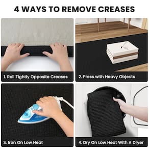 - Aviso de dobra: os tapetes Ivissy são dobrados para embalagem, o que pode causar vincos temporários. Para remover vincos, coloque um pano úmido sobre o tapete e passe suavemente com um ferro a vapor de baixa temperatura ou seque na secadora