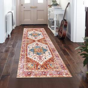 Tapete de corredor vintage boho antiderrapante com suporte de borracha - ?Design vintage e tapete macio?O tapete de corrida boho Yamaziot é feito de lã sintética 100% poliéster, que é luxuosa e macia sob os pés e não irrita os pés. Este corredor vintage tem um lindo padrão floral estampado exclusivo e um estilo moderno desbotado. Possui elementos de destaque, boêmio e tradicional para dar um visual elegante à sua casa - ?Tapete antiderrapante e que não caia?O tapete de corredor longo tem suporte de borracha TPR antiderrapante contra escorregões ou tropeços, o que é seguro para áreas internas diárias para crianças ou idosos. O material de poliéster de alta qualidade não solta e as bordas reforçadas o tornam mais durável - Tapete lavável na máquina: o caminho de cozinha é resistente a manchas e fácil de limpar. Os derramamentos podem ser facilmente limpos e aspirados para limpeza diária. A máquina de lavar também está disponível para uma limpeza mais profunda. Lavar em água fria e não adicionar alvejante. Secar ao ar, não passar a ferro. Fácil de manter um novo visual - ?Tapete funcional? Nosso tapete de lã sintética com altura baixa (0,7 cm) não obstrui as portas. Use este corredor de corredor de 5 x 15 cm para adicionar apelo vintage e adição funcional à sua casa. Pode ser utilizado como tapete de cabeceira, tapete de entrada interno, tapete de cozinha, tapete de lavanderia - Observação: os tapetes podem conter vincos temporários na chegada, aguarde tempo para que os vincos se achatem e assentem. As cores podem diferir ligeiramente do produto real devido a diferentes monitores e efeitos de luz