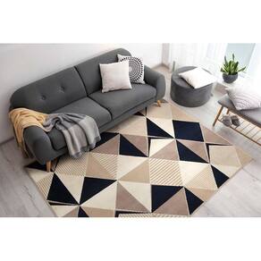 A estampa geométrica deste tapete é o seu destaque, apresentando uma combinação de formas e linhas que criam um efeito visual interessante e moderno. As cores sutis e elegantes do tapete complementam perfeitamente a estampa e permitem que ele se encaixe em uma variedade de estilos de decoração.