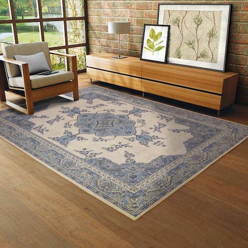 Tapete Sala Tabriz Bege Azul 150X200 Cm Classico Tipo Belga