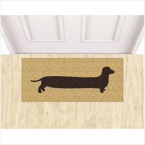 Tapete Capacho Vinil com fibras entrelaçadas e costado emborrachado com arte pinta em tinta vinílica especial.