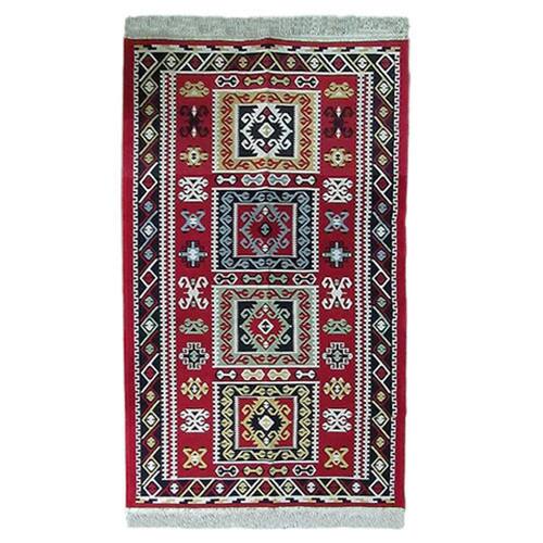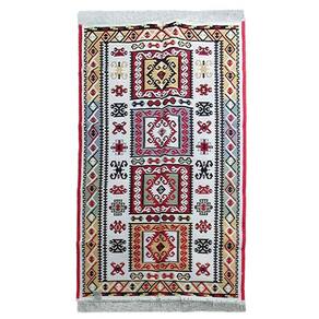 Este tapete em particular apresenta um design encantador, composto por uma mistura harmoniosa de cores vivas e vibrantes. Os tons ricos e intensos incluem vermelho, azul, verde, amarelo e outros matizes atraentes, que dão vida a cada detalhe do padrão. Os motivos geométricos, como losangos, triângulos e formas estilizadas, criam uma estética moderna e visualmente interessante.