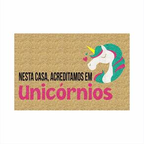 Tapete Vinil Nesta Casa, Acreditamos em Unicórnios 60X40 cm. - Cor.: Bege