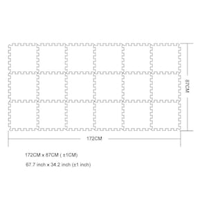 Tamanho de uma peça: 30 x 30 x 1,0 cm (considere uma diferença de 0,1 a 1 cm). 18 peças por conjunto. Material: Feito de EVA ecológico não tóxico e sem odor. Estação adequada: primavera, verão, outono, inverno - ? Área de cobertura do tapete de brincar -- 172 cm x 87 cm (± 1 cm) / (172.0 cm* 86.9 cm (± 1 polegada)) - ? Tapete de espuma seguro -- livre de BPA, livre de ftalatos, sem grafite. Os tapetes YIMINYUER Play são feitos de espuma macia e segura e durável. Não é tóxico e atende aos padrões de segurança regulamentados pelos EUA e Europa. - ? Tapete grosso e macio -- A espessura é de 1 cm (0,4 polegadas), forte flexibilidade e durabilidade. Perfeito para proteção do chão, exercícios, ioga, sala de jogos. - ? Pode quebra-cabeças com os tapetes de padrão com tamanho 30 cm * 30 cm * 1 cm em nossa loja. - ? Observação: nossos produtos não podem se encaixar nos tapetes de outras lojas.