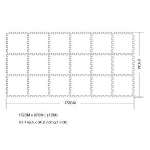 Tamanho de uma peça: 30 x 30 x 1,0 cm (considere uma diferença de 0,1 a 1 cm). 18 peças por conjunto. Material: Feito de EVA ecológico não tóxico e sem odor. Estação adequada: primavera, verão, outono, inverno - ? Área de cobertura do tapete de brincar -- 172 cm x 87 cm (± 1 cm) / (172.0 cm* 86.9 cm (± 1 polegada)) - ? Tapete de espuma seguro -- livre de BPA, livre de ftalatos, sem grafite. Os tapetes YIMINYUER Play são feitos de espuma macia e segura e durável. Não é tóxico e atende aos padrões de segurança regulamentados pelos EUA e Europa. - ? Tapete espesso e macio -- A espessura é de 1 cm (0,4 polegadas), forte flexibilidade e durabilidade. Perfeito para proteção do chão, exercícios, ioga, sala de jogos. - ? Pode quebra-cabeças com os tapetes de padrão com tamanho 30 cm * 30 cm * 1 cm em nossa loja. - ?Observação: nossos produtos não podem se encaixar nos tapetes de outras lojas.