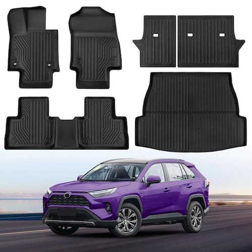 - Design personalizado para Toyota RAV4: tapetes RAV4 para todos os climas serve para Toyota RAV4 LE, XLE, XLE Premium, Adventure, TRD Off-Road, Limited, Hybrid LE, Hybrid XLE, Hybrid Woodland Edition, Hybrid XLE Premium, Hybrid SE, Hybrid XSE, Hybrid Limited 2025 2024 2023 2022 2022 021 2 020 2019, incluindo 1 tapete lateral do motorista, 1 tapete do lado do passageiro dianteiro, 1 tapete lateral do passageiro da segunda fileira e 2 tapetes de banco traseiro e 1 tapete de porta-malas traseiro. Os tapetes laterais do motorista com uma almofada de calcanhar de textura antiderrapante incentivam a condução segura com mais controle dos pés.