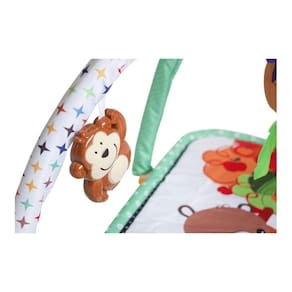 Tapete acolchoado de alta qualidade 1 barras de brinquedo macias 3 brinquedos de diferentes formatos e texturas para estímulo tátil Tapete com estampa colorida diverte e estimula o bebê