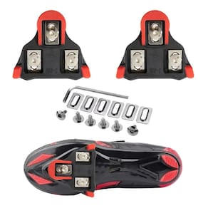 - Marca: Promend - Modelo: PDZ-R07 - Cor: Preto com detalhes em Vermelho --Material: Plástico ABS - Compatibilidade com sapatilhas de speed/road com 3 furos em formato de triângulo na sola - Compatível apenas para pedais SHIMANO - Float (flutuação): 0°