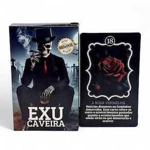 Características: 36 cartas com mensagens diretas e autoexplicativas Conexão com a energia do Exu Caveira, guardião e mensageiro espiritual Ideal para autoconhecimento, aconselhamento e consultas espirituais Design marcante, com ilustrações simbólicas e energia vibrante Acompanha manual digital de instruções e consagração