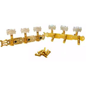 Tarraxa para Violão - Pino Pino Marca: MXTModelo 54.5.00199 Cordas: Aço / Nylon Cor: Dourado Material: Ferro, ABS Disposição:: 3+3 Orientação: Direita/Esquerda Distancia entre os furos: aprox. 3,5 cmDistancia entre os pinos : aprox. 3,0 cm Peso: 150 g