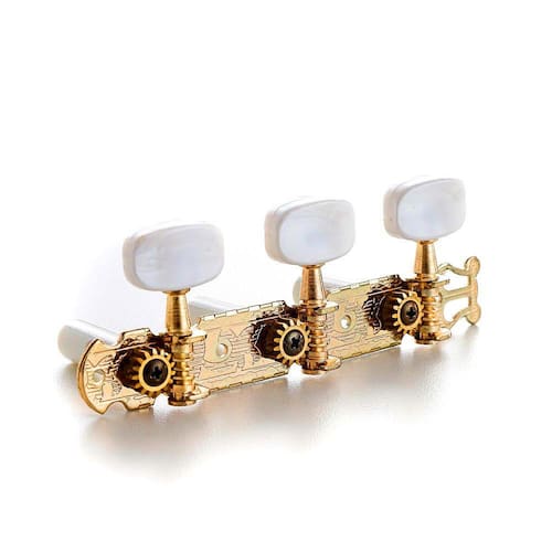Tarraxas para Violão com hardware em acabamento dourado e botão branco perolizado, Spirit Guitar Parts - J98-GD-R1L1. - Engrenagens com precisão de 15:1