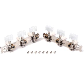 Jogo de tarraxas para violão Tipo:pino grosso. Botões desenhados:plástico injetado com acabamento semelhante a madrepérola. Material:metal. Acabamento:cromado. Origem:. Alta qualidade e excelente durabilidade. Ideal para violões de NYLON. Marca: Não Informado