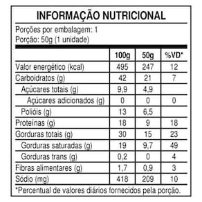 Ingredientes: cobertura proteica sabor creme de queijo, gordura vegetal, maltitol, leite desnatado em pó, amido de mandioca, farinha de arroz, proteína concentrada do soro de leite, queijo em pó, polidextrose, sal, alho em pó, salsa desidratada, cebola em pó, aromatizantes, emulsificantes lecitina de soja e polirricinoleato de poliglicerol e espessante goma xantana. Não contém glúten. Contém lactose. Alérgicos: contém derivados de leite e soja. Pode conter amendoim, avelã e pistache.