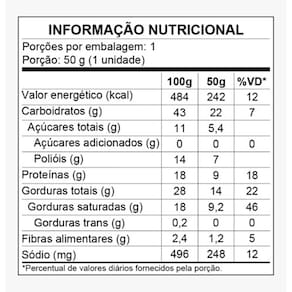 Ingredientes: cobertura proteica sabor queijo, gordura vegetal, maltitol, leite desnatado em pó, amido de mandioca, farinha de arroz, proteína concentrada do soro de leite, tomate em pó, queijo em pó, polidextrose, sal, manjericão desidratado, emulsificantes lecitina de soja e polirricinoleato de poliglicerol, espessante goma xantana e aromatizantes. Não contém glúten. Contém lactose. Alérgicos: contém derivados de leite e soja. Pode conter amendoim, avelã e pistache. Marca: Não Informado
