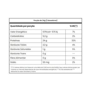 Proteínas do soro de leite: a concentrada (WPC), a isolada (WPI) e a hidrolisada (WPH), aromatizante natural, cloreto de potássio, estabilizante goma xantana, edulcorantes, sucralose e acessulfame de potássio.