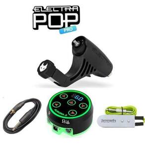 O kit de materiais de tatuagem com a máquina electra pop e a fonte aurora 2 é um conjunto completo para iniciantes e profissionais de tatuagem. A máquina electra pop é uma máquina rotativa de alta qualidade, que oferece uma operação suave e consistente. Seu design ergonômico permite uma aderência confortável e controle preciso, resultando em linhas nítidas e sombreamentos suaves.
