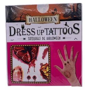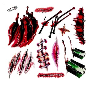 Complete sua fantasia de Halloween com o Adesivo Dor! Cada kit vem com 12 pacotes de tatuagens temporárias que imitam cicatrizes realistas, perfeitas para adicionar um toque assustador e autêntico ao seu visual.