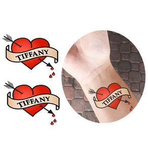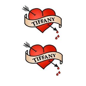 Tatuagem temporária coração nome tiffani noiva chucky Valor referente a uma Cartela com 2 tatuagens cada tatuagem tem tamanho aproximado de 40mm