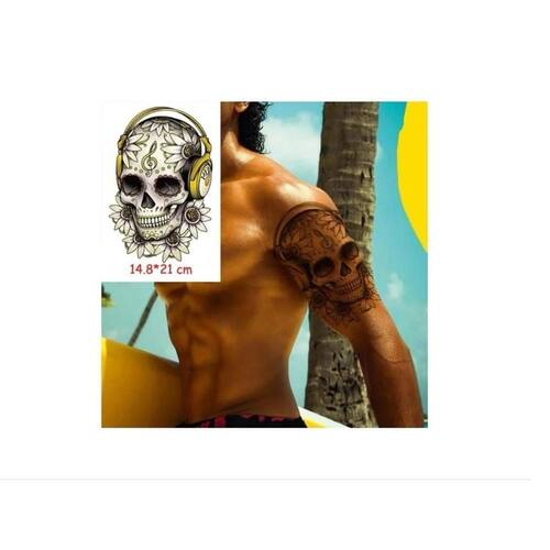Tatuagem Temporária Dark Delicada Com 20 Cm Caveira Som Nome do desenho: Caveira Cor: colorida Tatuagem Temporária - Tattoo Temporária