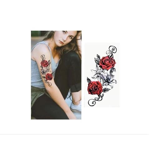Tatuagem Temporária Dark Delicada Com 20 Cm Flores Vermelha Nome do desenho: Leão Cor: Vermelho Tatuagem Temporária - Tattoo Temporária