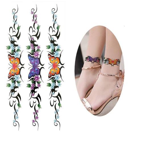 Tatuagem Temporária Flores Borboletas 3 Faixas 19 Cm