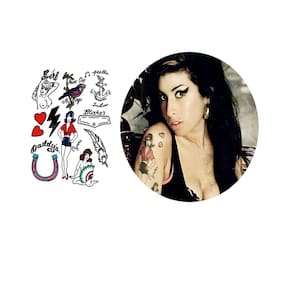 Tatuagem temporária folha a4 amy winehouse cosplay Ótimo recurso para ver como vai ficar antes de fazer uma tatuagem permanente.