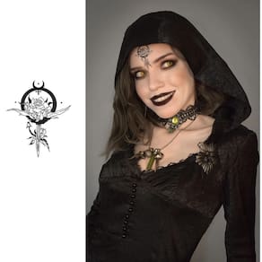 Tatuagem temporária kit 2 cosplay Cassandra Dimitrescu 45mm Transforme-se na poderosa Cassandra Dimitrescu com nosso Kit de Tatuagem Temporária, que traz 2 designs exclusivos de 45 mm Inspiradas na icônica personagem de Resident Evil,essas tatuagens são perfeitas para quem deseja se destacar em eventos de Cosplay, convenções ou festas temáticas . Cada tatuagem apresenta detalhes meticulosamente elaborados que capturam a essência da sofisticação e do poder de Cassandra. Fácil de aplicar, essa tatuagem temporária se integra perfeitamente ao seu visual, permitindo que você complemente seu cosplay com estilo e inconvenientes. A aplicação é rápida e a remoção é simples, garantindo que você possa mudar de visual a qualquer momento. Não perca a chance de garantir seu Kit de Tatuagem Temporária e leve consigo o elegante e o mistério de Cassandra Dimitrescu em cada aventura Marca: 3I Marca: 3I